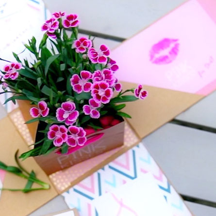 During the summer of 2019, Pink Kisses® went on a DIY Tour through Germany: In 20 garden centres you could unleash your creativity using decorative paper, fancy wrappings, glitter, ribbon and much more from our lavishly equipped deco counter and make the mini carnations into personal gifts.